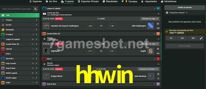 O hhwin oferece uma grande seleção de opções de apostas em e-sports com probabilidades competitivas